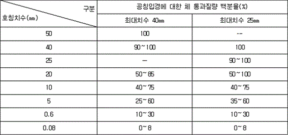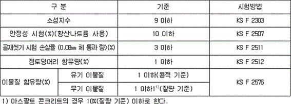 입도조정 기층용 순환골재 기층 품질관리 항목