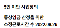 이번에 다룰 내용은 5인 미만 사업장의 통상임금 산정을 위한 소정근로시간 수입니다.