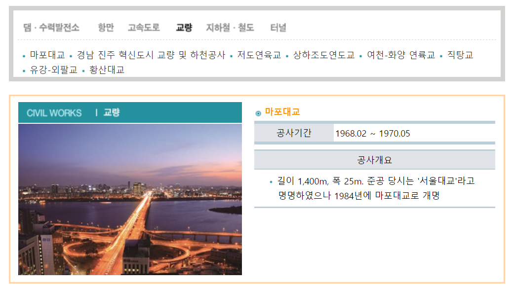 마포대교 경남 진주 혁신도시 교량 및 하천공사 저도연육교 상하조도연도교 여천-화양 연륙교 직탕교 유강-외팔교 황산대교