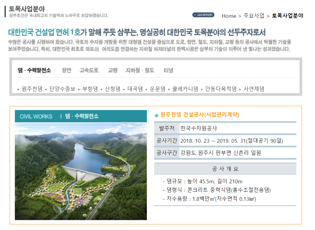 삼부토건 주요 사업분야