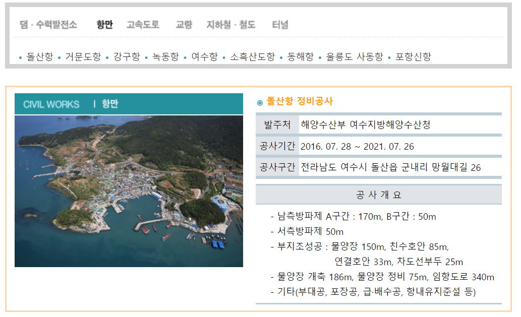 돌산항 거문도항 강구항 녹동항 여수항 소흑산도항 동해항 울릉도 사동항 포항신항