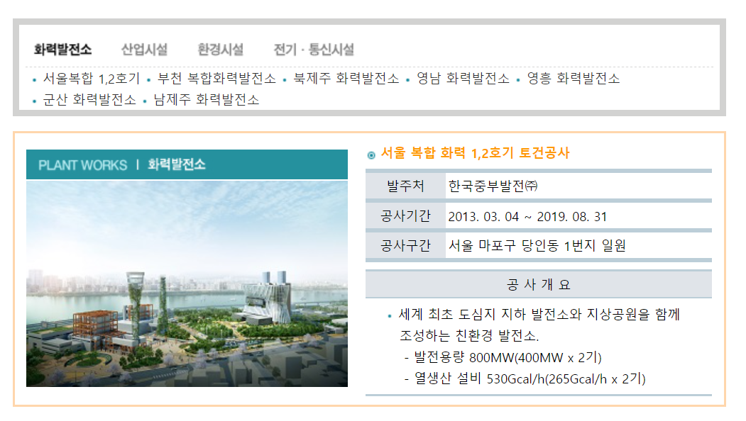 서울복합 1,2호기 부천 복합화력발전소 북제주 화력발전소 영남 화력발전소 영흥 화력발전소 군산 화력발전소 남제주 화력발전소