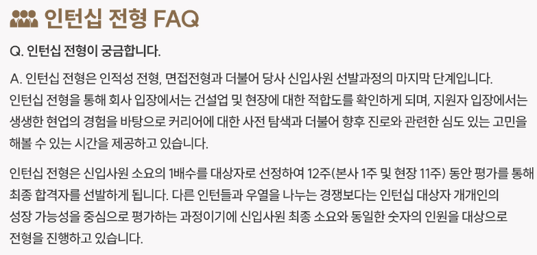 인턴십 전형은 신입사원 소요의 1배수를 대상자로 선정하며, 이는 진짜 X을 싸지 않는이상은 채용이 될 확률이 높다고 생각하시면 됩니다.