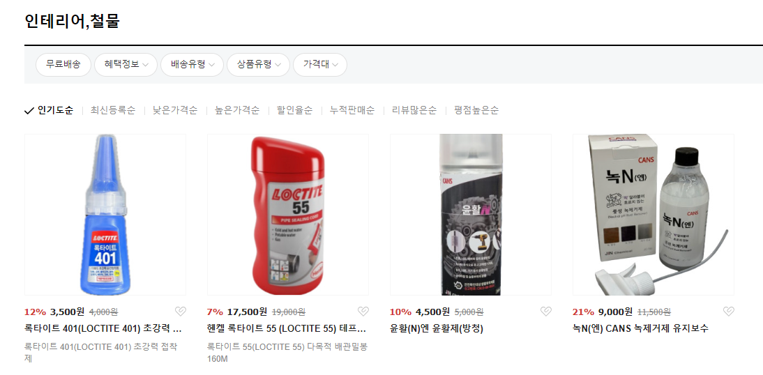 녹N 녹제거제, 애니픽스 에폭시 접착보수제, 윤활N 윤활제 등 부터 시작하여 심장제세동기까지 얼마든지 다 요청만하면 구해다 주는 기준엠알오