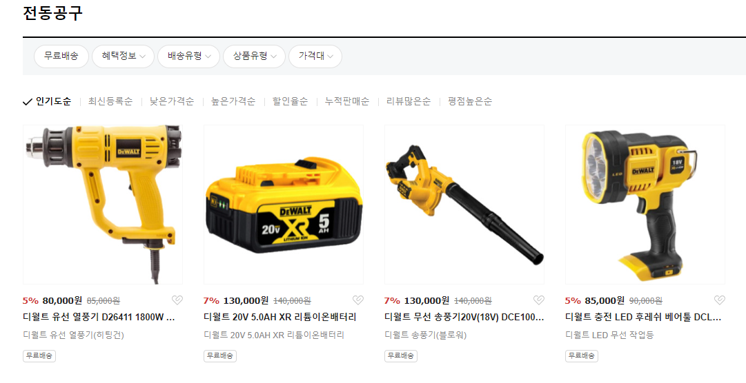 디월트 LED 작업등, 디월트 무선 송풍기, 디월트 리튬이온배터리,