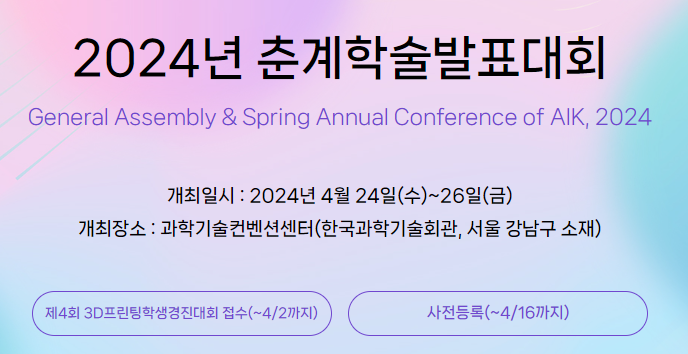 - 당선작 발표 및 시상 : 2024년 4월 26일(금) 17:30, 과학기술컨벤션센터 지하1층 국제회의실, 학술발표대회시상식장