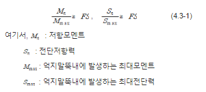 - 내적 안정성 해석: 저항모멘트, 전단저항력, 최대모멘트, 최대전단력 산정