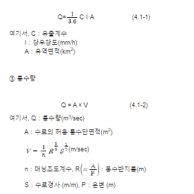 ③ 통수량은 식(4.1-2)을 사용하여 계산한다.