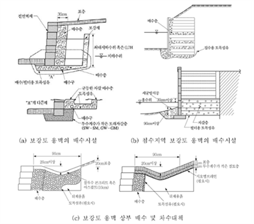 (3) 보강토옹벽에 적용하는 배수시설의 종류는 다음과 같다.