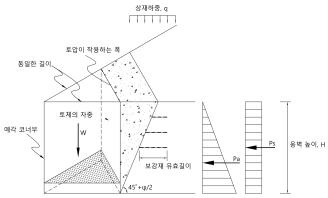 (3) 지진 시 내적안정해석은 각각의 보강재 위치에서 지진에 의해 추가되는 인장력을 고려하여 정적상태와 동일하게 계산한다.
