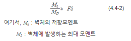 표 4.2-1 기대기 옹벽의 설계안전율| 구분 | 검토항목 | 평상시 | 비고 |