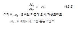 - 전도: 옹벽 저항모멘트 > 파괴쐐기 활동모멘트