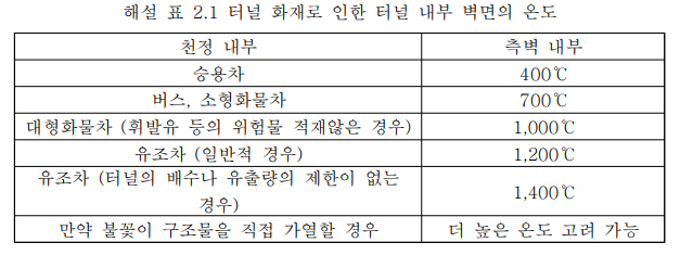 제2장 터널의 한계온도: 터널 내부의 최대 온도를 규정합니다.