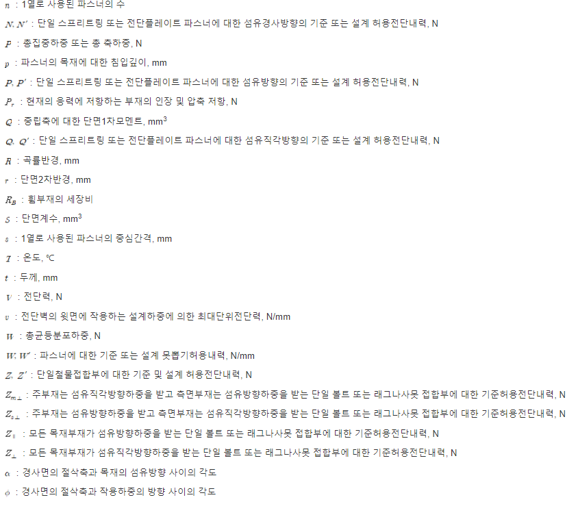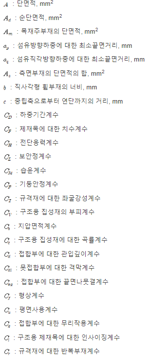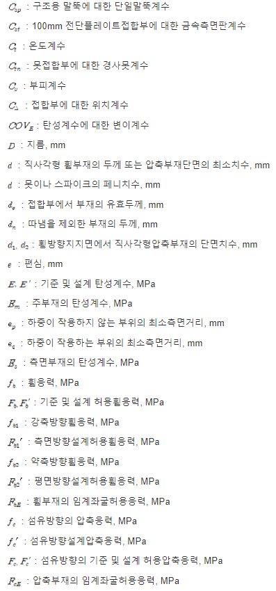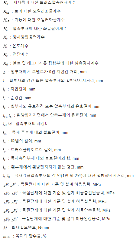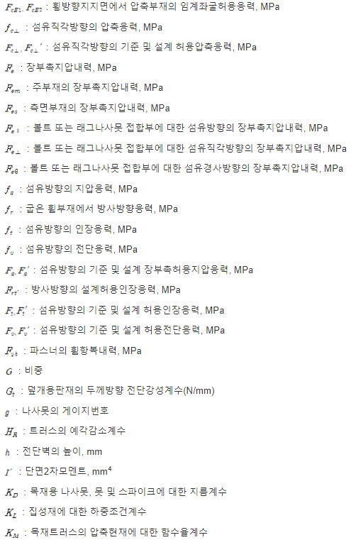 (1) 이 기준의 계산식 및 도표에 사용된 기호는 특별히 언급된 경우를 제외하고는 다음과 같은 의미를 갖는다.