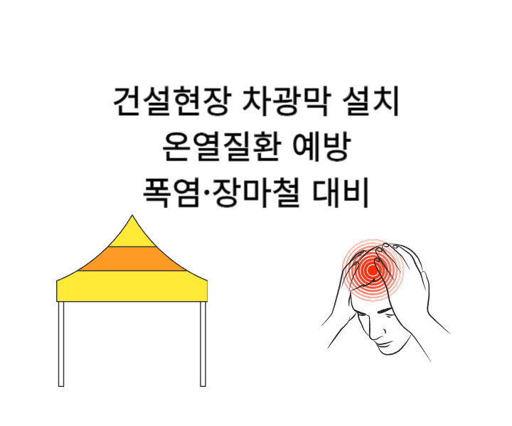 그늘이 잘 없는 토목 현장의 경우 차광막 설치는 필수였습니다. 고용노동부의 폭염 및 호우대비 안전관리 가이드 특별대응지침에도 해당 부분을 중요시 한다는 것을 알 수 있습니다.