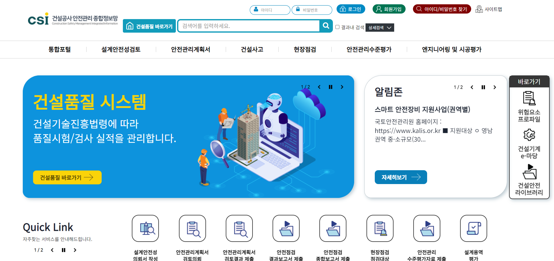 건설공사 안전관리 종합정보망(Construction Safety Management Integrated Information, CSI)은 건설 현장의 안전을 위한 혁신적인 시스템입니다. CSI는 건설 현장의 안전 사고 예방과 안전 관리 수준 향상을 목표로 구축되었으며, 다양한 정보와 기능을 제공하여 건설 안전 문화를 선도하고 있습니다.