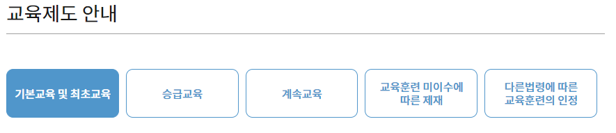 - 승급교육 (35시간~70시간): 상위 등급으로 승급하기 전에 이수해야 하는 교육입니다. 현재 등급보다 두 단계 이상 승급 시 최상위 등급 교육을 이수해야 합니다.