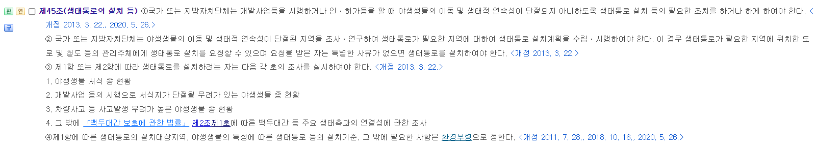 제45조(생태통로의 설치 등)