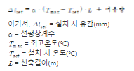 (2) 현장으로 반입된 신축이음장치는 (1)의 설치 시 유간을 확보하기 위해 다음 식만큼 유간을 조정하여 설치하여야 한다.