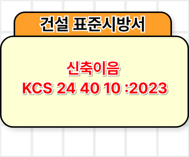 KCS 24 40 10 : 2023은 한국건설기술연구원에서 발행한 건설 표준 시방서로, "신축이음"에 대한 설계 및 시공 기준을 담고 있습니다. 이 시방서는 건축물의 구조물에 발생하는 온도 변화, 습도 변화, 하중 변화 등으로 인한 변형을 흡수하여 건축물의 안전성과 내구성을 확보하기 위한 신축이음 설계 및 시공에 필요한 사항들을 상세히 규정하고 있습니다. 구체적으로 신축이음의 종류, 위치, 형태, 재료, 시공 방법, 검사 방법 등을 다루고 있습니다.