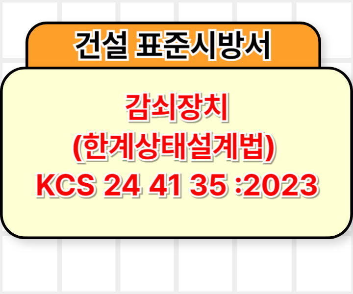 KCS 24 41 35 :2023은 한계상태설계법(LSD)을 적용한 감쇠장치에 대한 건설 표준 시방서입니다. 이 시방서는 감쇠장치의 설계, 제작, 시공 및 검사에 대한 상세한 지침을 제공하며, 구조물의 내진 성능을 향상시키기 위해 감쇠장치를 사용하는 경우 적용됩니다. 특히, 이 시방서는 감쇠장치의 종류, 성능, 설치 방법, 검사 기준 등을 명확하게 규정하여 감쇠장치가 구조물의 안전성에 기여할 수 있도록 합니다.