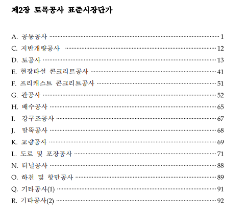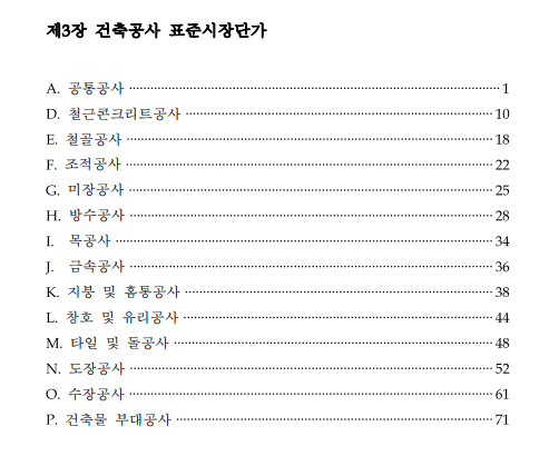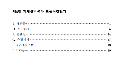 제2장 토목공사와 제3장 건축공사 그리고 제 4장 기계설비공사가 있으며, 이는 아마 가장 많이 찾는 부분이라고 생각됩니다.
