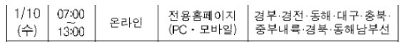 24년 1월 10일 예매 가능한 노선은 경부선, 경전선, 동해선, 대구선, 충북선, 중부내륙선, 경북선, 동해남부선이었습니다.