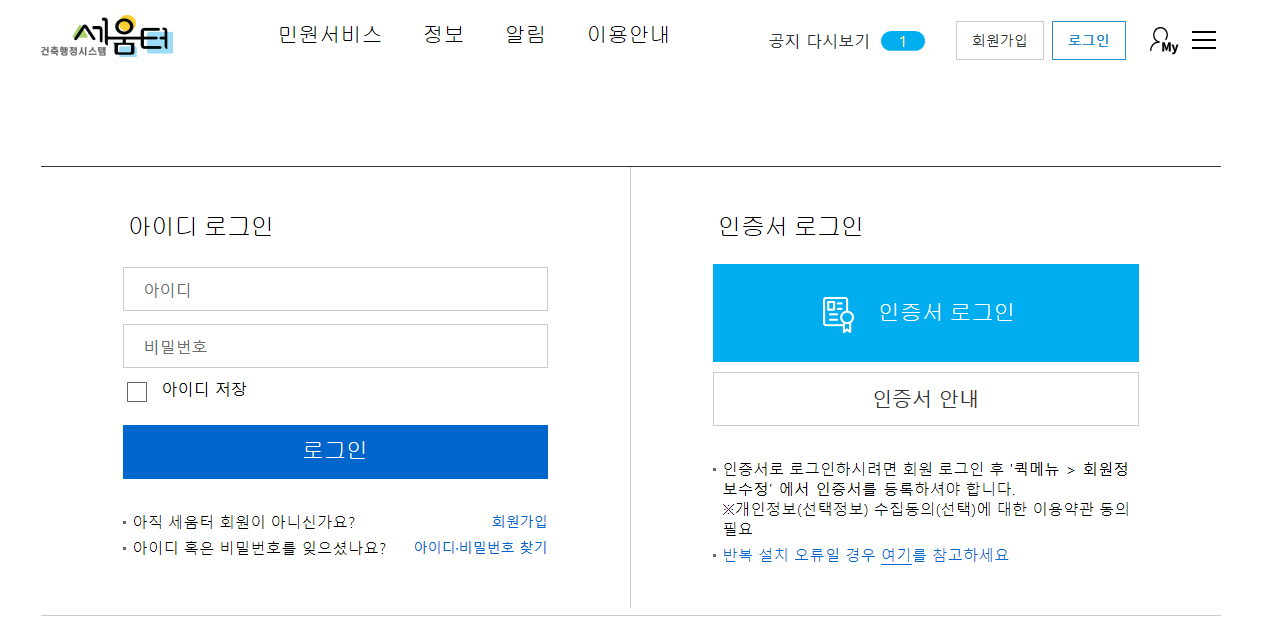 3. 로그인에는 인증서 로그인, 아이디로그인이 있습니다. 해당되는 걸 선택하여 로그인 합니다.