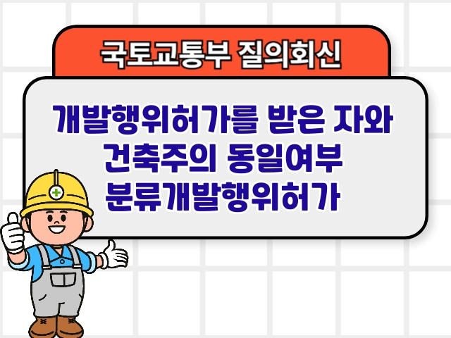국토교통부 질의회신 | 개발행위허가를 받은 자와 건축주의 동일여부 분류개발행위허가